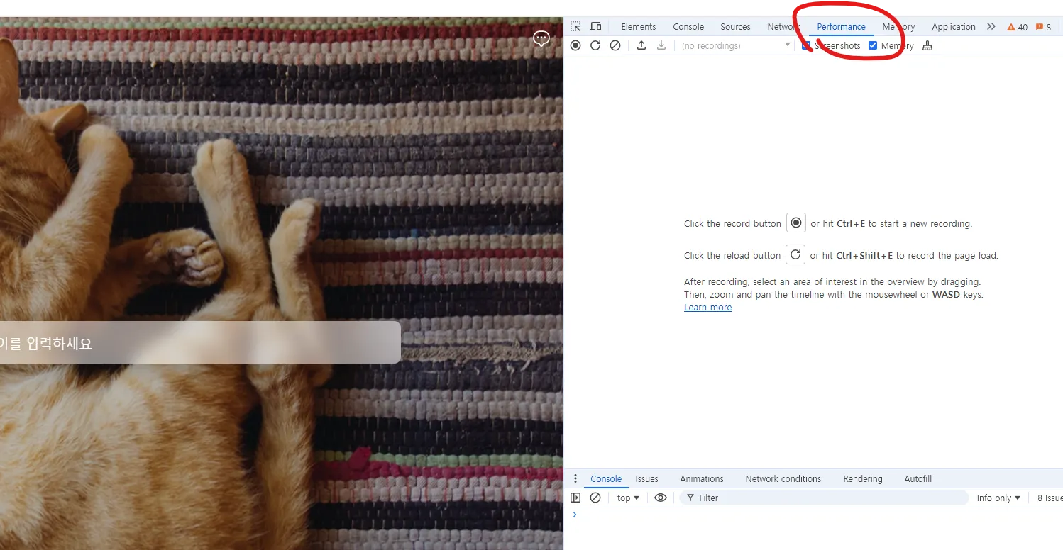 크롬 개발자 도구의 Performance 탭은 웹 페이지의