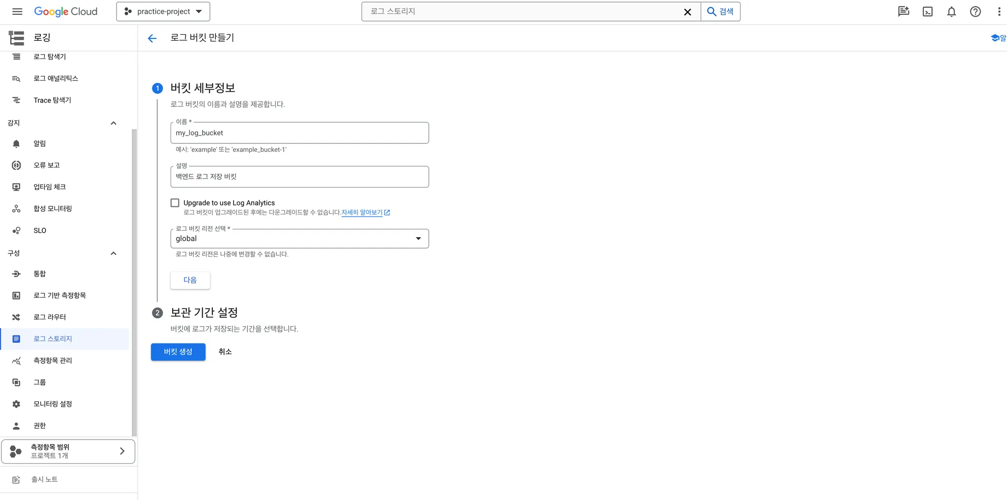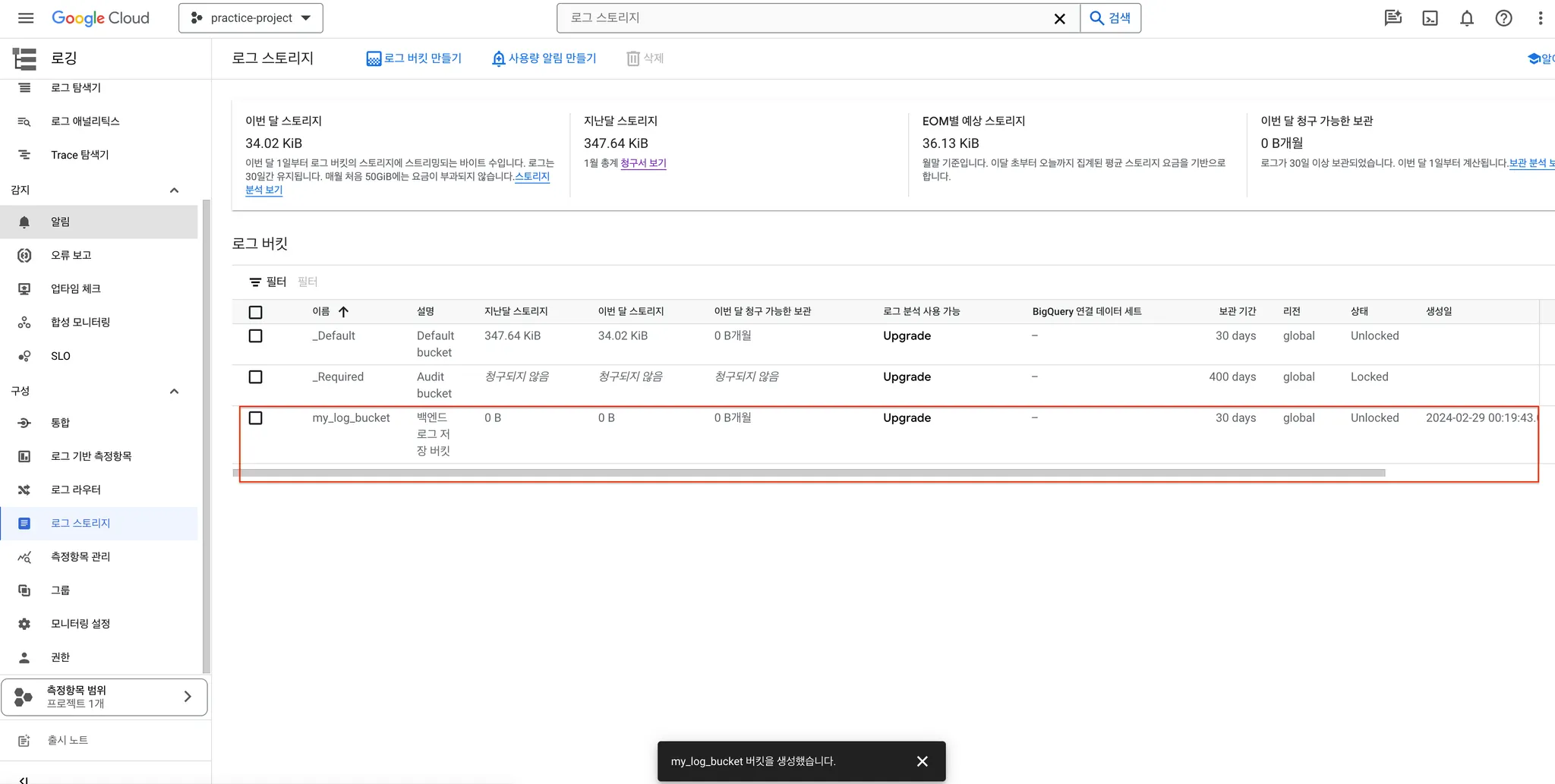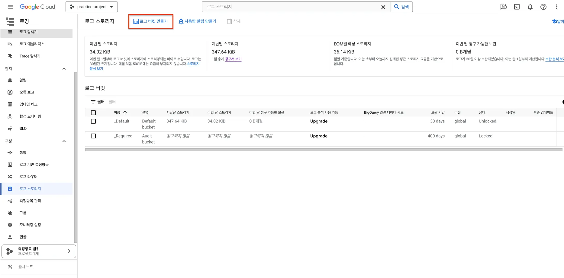 로그 스토리지에 로그 버킷 생성하기