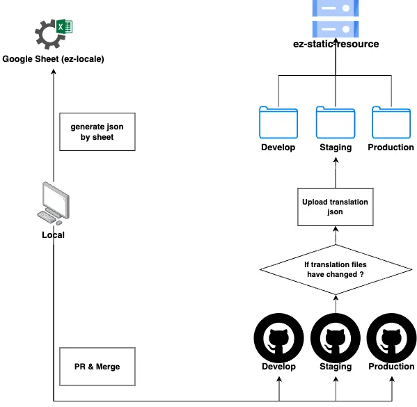 안녕하세요. 볼드나인 프론트엔드 팀 에이든입니다. 많은 서비스에서 국제화를 제공하는 것처럼 ezstorage에서도 국제화 기능을 제공합니다. 오늘은 국제화에 사용되는 Translation resource 업로드 자동화 도입 과정에 대해서 이야기해 보려고 합니다.
