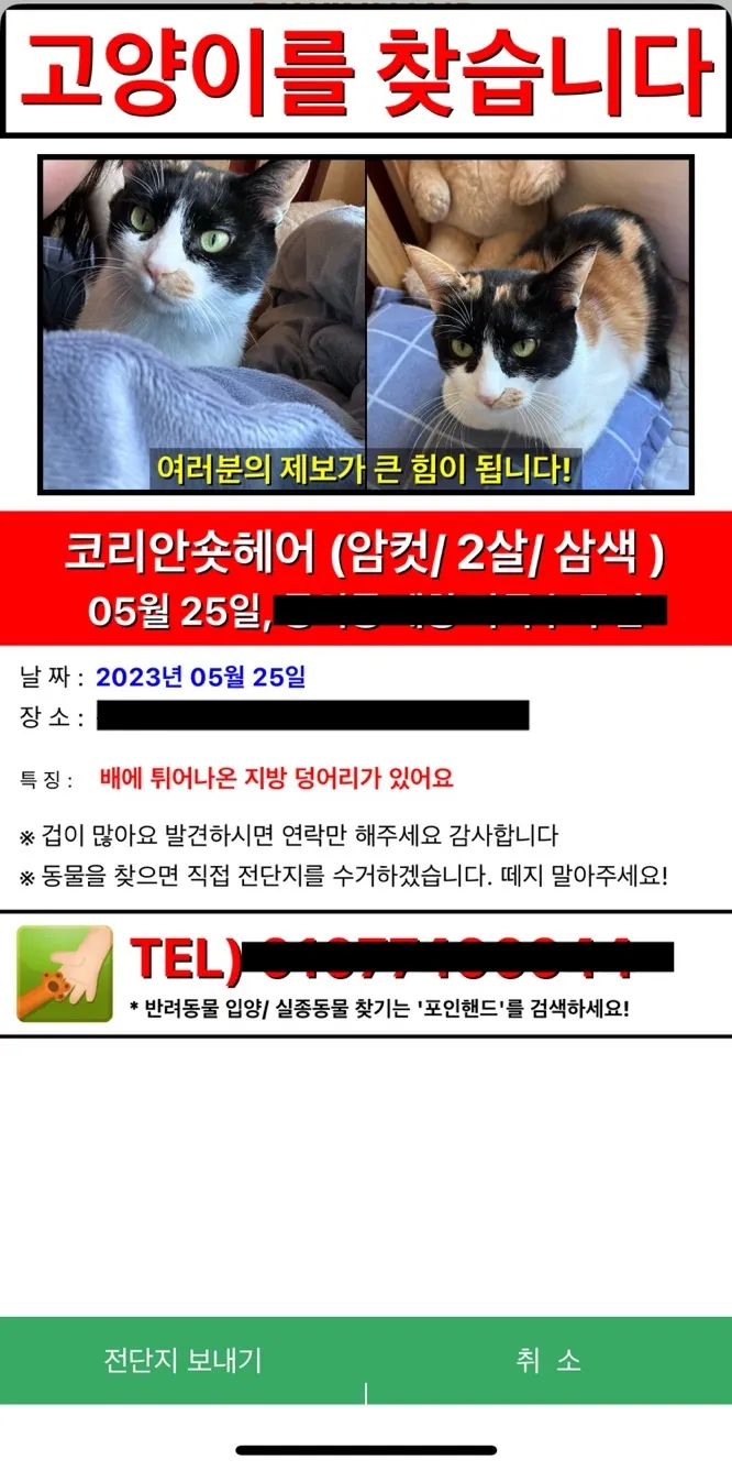 7년 전쯤 우리 집 백구가 집을 탈출했던 날이 생각난다. 비도 오고 정신이 없어 전단지를 만들 정신은 더더욱 없었을 때 이 기능은 정말이지 너무나도 도움이 되었다. 그때는 포인핸드라는 서비스라고 인지도 못하고 썼었는데…