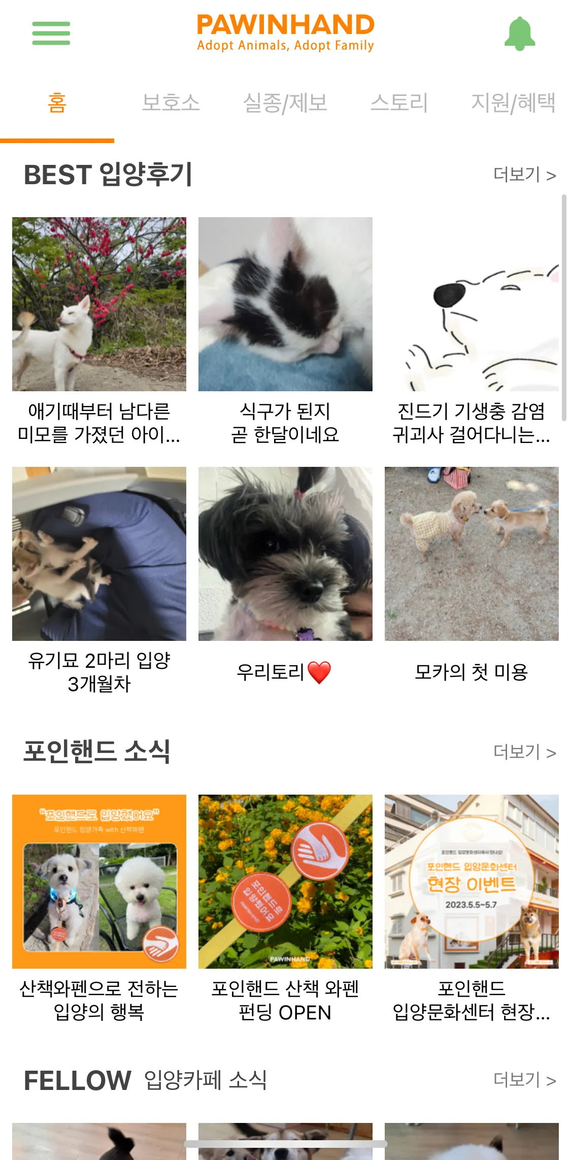 사실 아무 서비스도 없던 유기견 세상에 포인핸드는 한줄기 빛과도 같아 좋은 의견만 100x100번 드리고 싶은 마음이다.