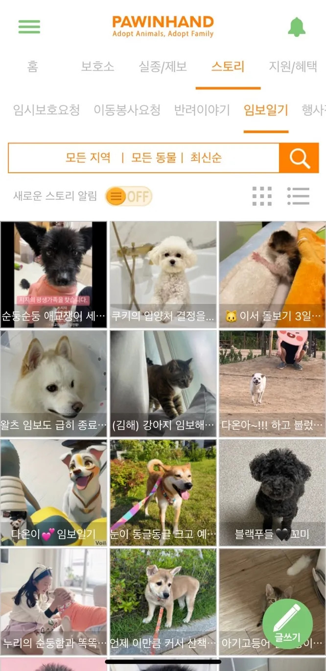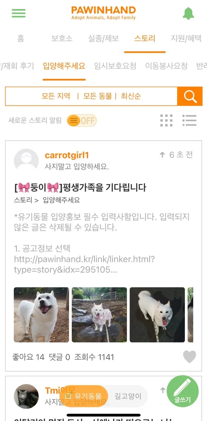 나의 경우 서울이 생활 터전이지만 사람들의 발길이 많지 않은 곳의 지역의 아이들이 입양의 기회가 적을 것 같아 조금 거리가 있는 곳에서 강아지들을 입양했다. 그때도 지역 필터가 꽤나 유용했다. 서울을 빼고 볼 수 있었기 때문이다.
