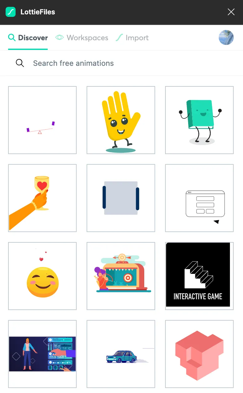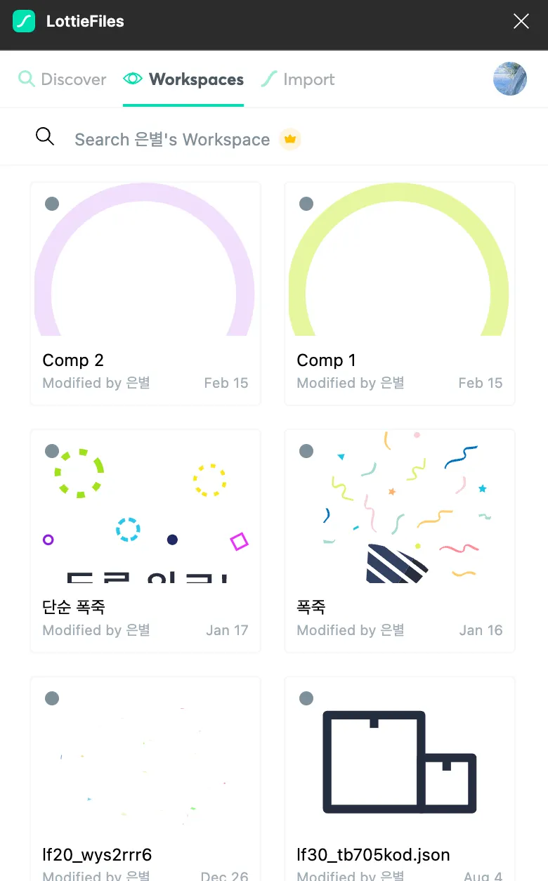 Discover에는 Lottie 오픈소스들을 사용할 수 있다. (저작권 확인 필요)