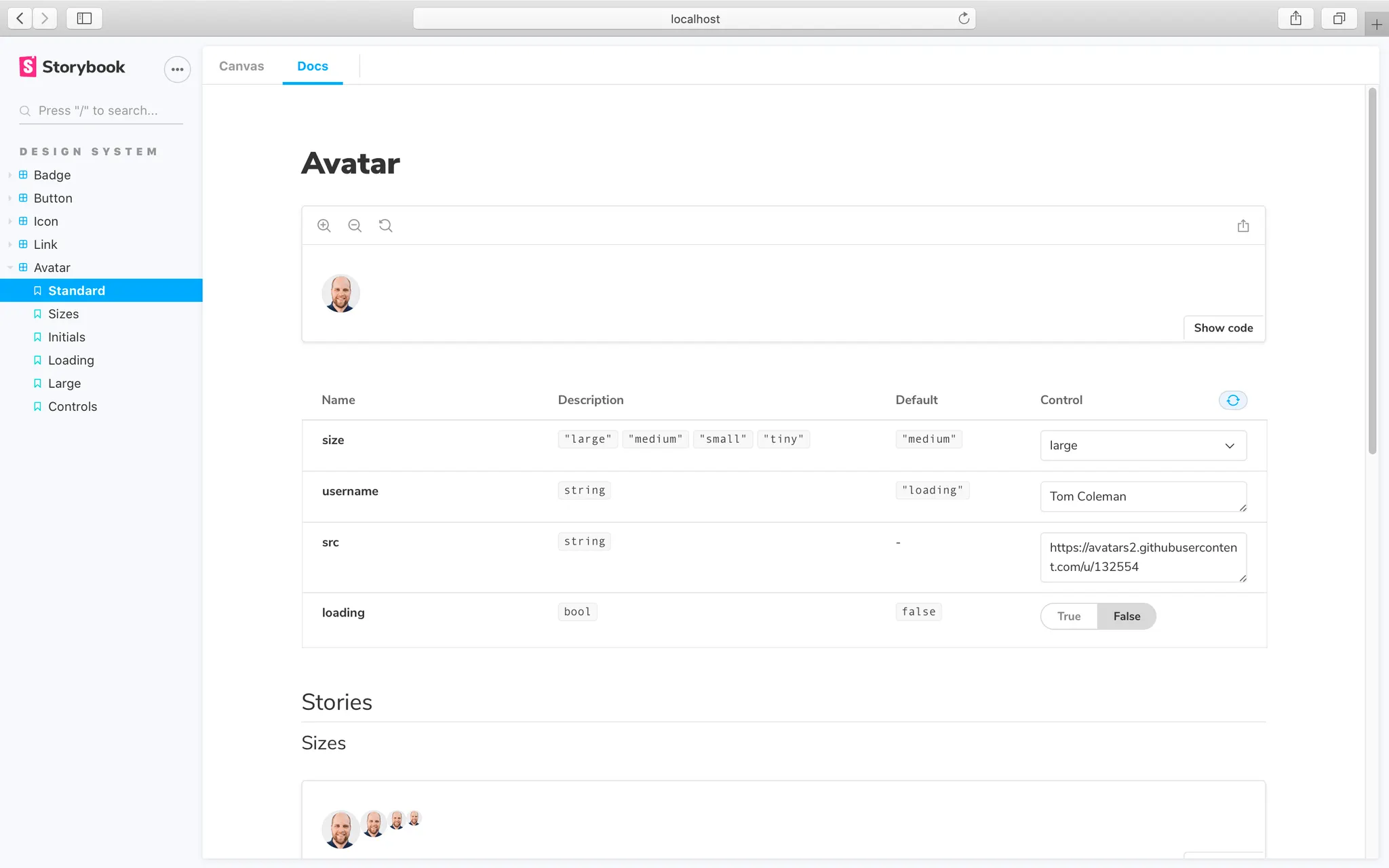 Storybook에서 ‘스토리’는 UI 컴포넌트의 렌더링된 상태를 캡쳐합니다. 따라서 개발자들이 컴포넌트마다 이 스토리라는 것을 작성해두면 결과물을 즉시 확인할 수 있습니다. 즉, 개발자뿐만 아니라 디자이너나 PM도 시각적으로 바로 UI 컴포넌트를 미리 볼 수 있고, 다양한 상태에 따른 결과물도 원하는 대로 조작하여 볼 수 있습니다.