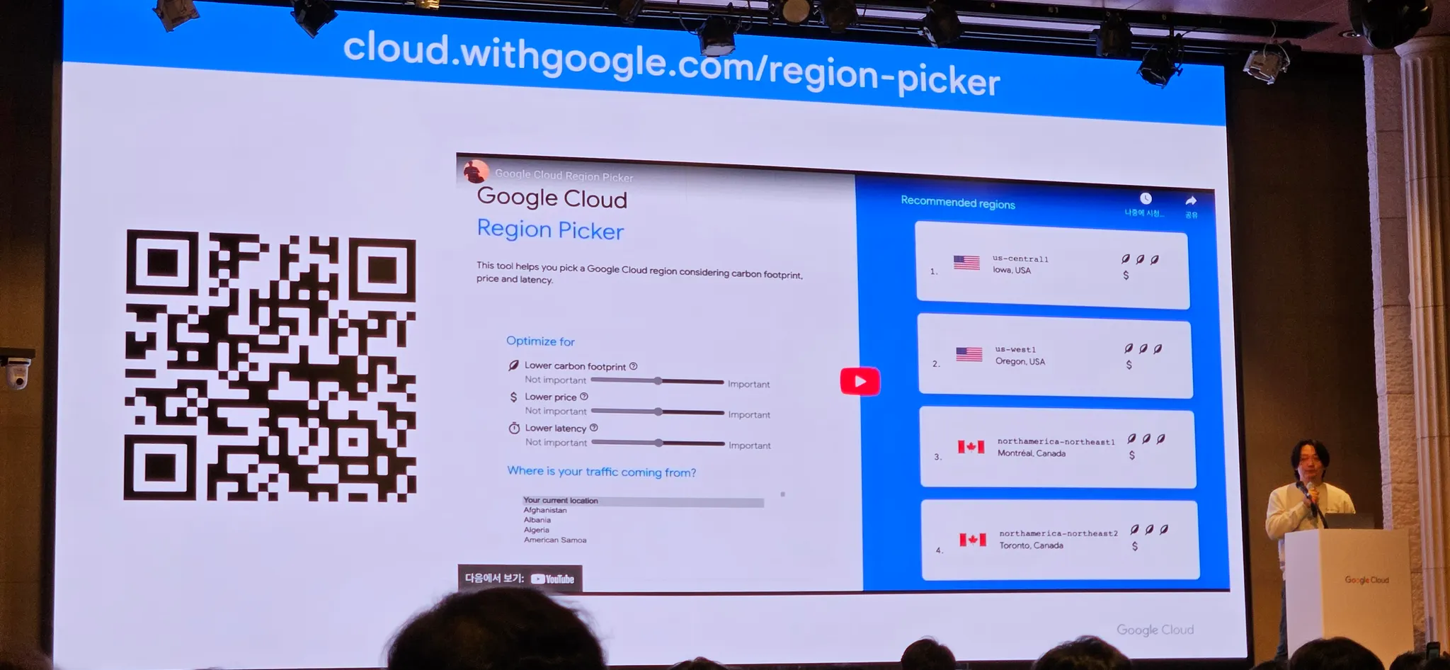 데이터 센터의 규모가 어마어마한 것과 그러면서도 가장 청정한 클라우드인 것. 그리고 해저 광케이블에 진심인 모습을 설명해 주셨습니다.
