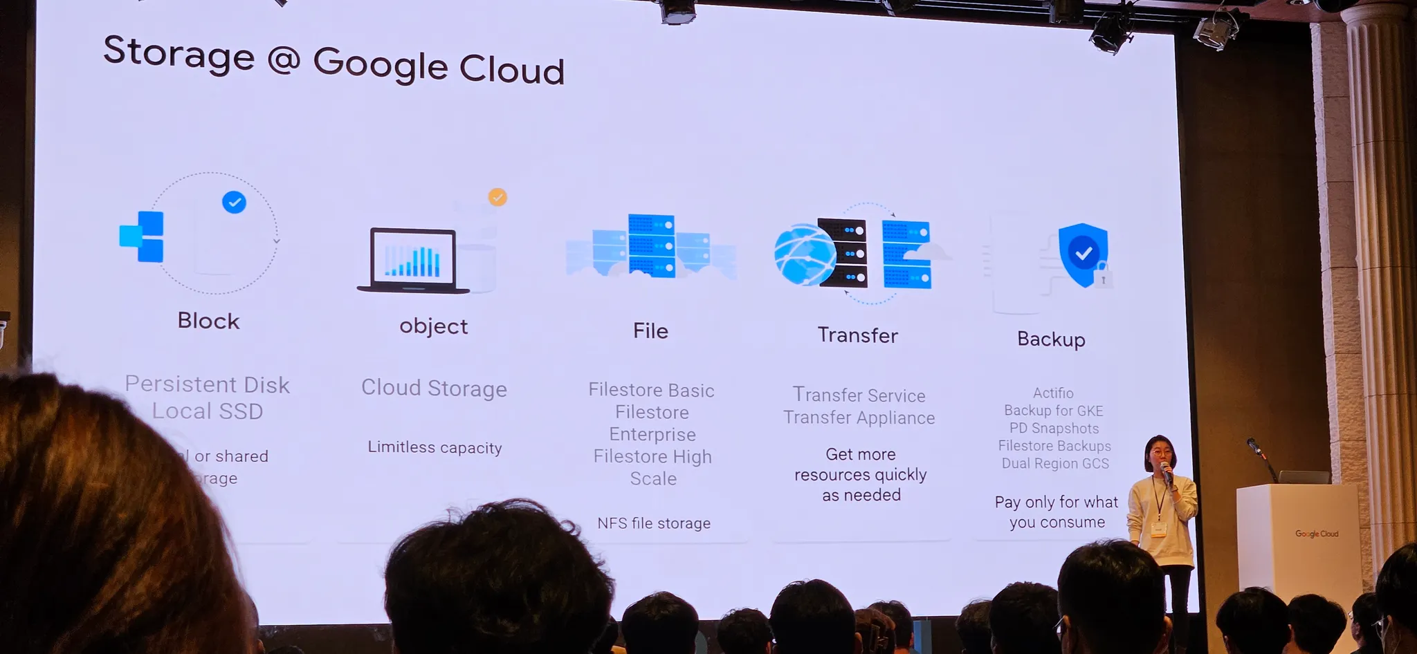 Compute Engine 시간과 마찬가지로 각 스토리지마다 어떠한 옵션들을 선택할 수 있는지에 대한 안내와 제공하는 기능들(Autoclass, 객체 수명 주기 관리, 보호/보존 조치 등)에 대한 설명을 들을 수 있었습니다.