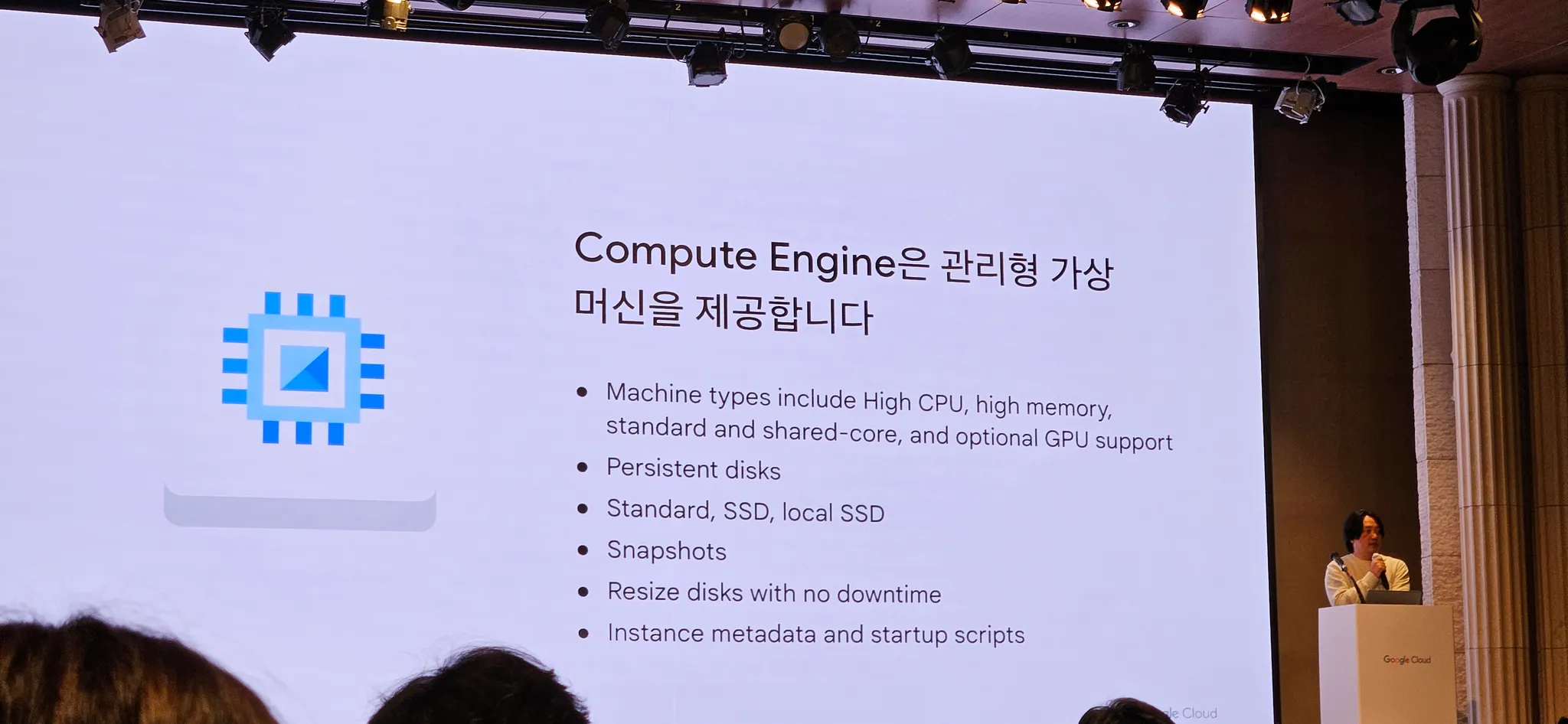 점심 이후 오프닝을 해준 진광훈 customer engineer 님이 다시 나오셔서 compute engine에 대한 설명도 진행해주셨습니다.