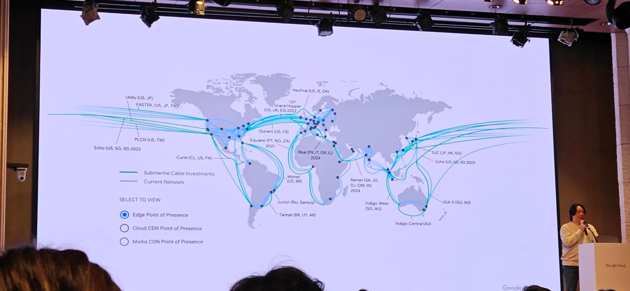 구글이 설치한 해저 광케이블과 투자를 한 광케이블에 대해서 설명해 주시는 모습.