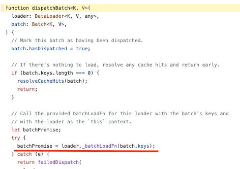 dispatchBatch 함수에서는 기존에 load 메서드에서 캐시한 유저 아이디를 사용하여 위에서 우리가 정의한 batchPosts 함수를 실행합니다. batchPosts 함수는 반드시 promise를 반환해야 합니다.
