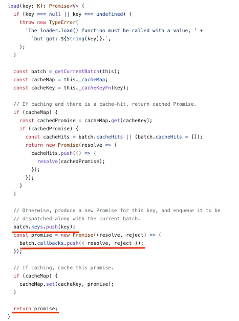 batchPosts에서 캐시된 keys 값(authorId)으로 실행한 후, 그 값은 batchPromise에 넣습니다.