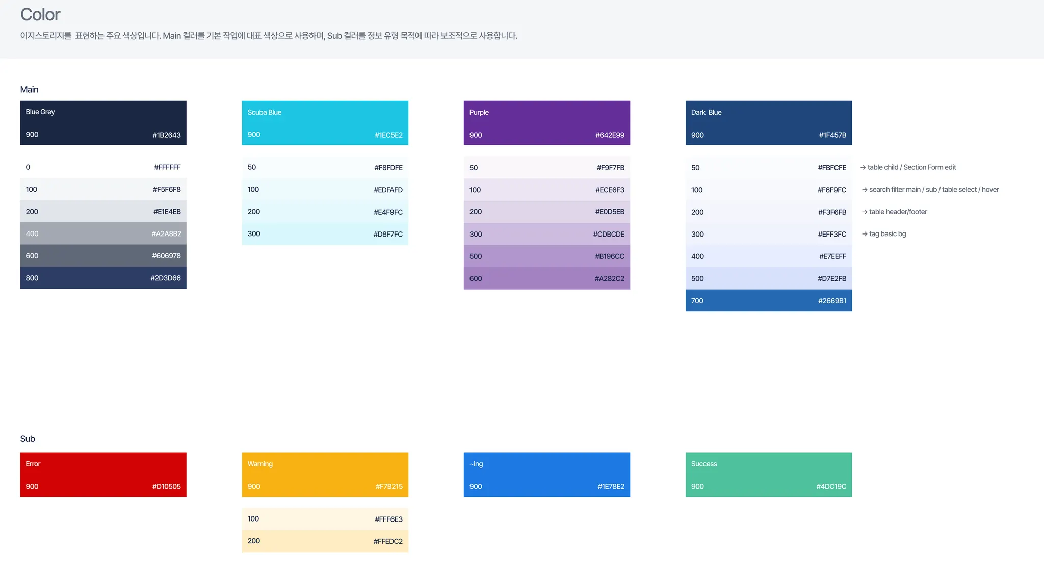 여기까지 ezstorage(web) 기준으로 작성한 스타일 가이드를 토대로 설명했습니다. 제가 작성한 스타일 가이드는 총 20페이지입니다. 최대한 개발자분들이 디테일하게 볼 수 있도록 제작하다 보니 지금은 서로 피로도가 높은 상태가 되었습니다. 디자인팀 숙제는 최대한 디테일하게 그리고 짧고 굵게 정리의 필요성을 느낍니다. (어려움) 처음 스타일 가이드를 접했을 때는 개발자분들이 디자이너 없이 뚝딱뚝딱 만들어줄 수 있을 거라 생각했는데 길게 말할 일이 짧게 끝나거나 건너뛰기만 가능할 뿐 계속해서 디자이너의 손을 거쳐 다시 소통해야 하는 일은 줄지 않습니다. 이렇게 소통하다 보면 새로운 시각이 나오고, 서로 다른 견해가 새삼스레 튀어나오는 등 개선하며 발전되고 있어 대화하는 재미가 있습니다.