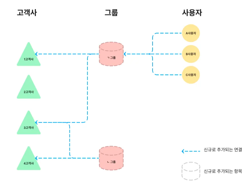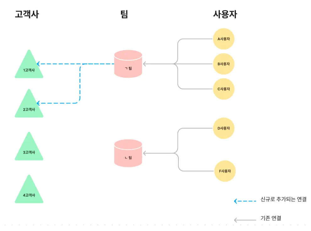 이번에는 가장 최근에 배포한 팀별 고객사 관리 기능 기획 과정에 대해 적어보려고 합니다. 23년 초 배포 진행한 가장 큰 기능이기도 했고, 2차 배포 전 1차 배포 회고 겸 정리해 보았습니다.